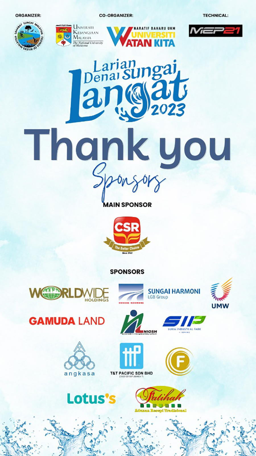 Friends of River Malaysia with Universiti Kebangsaan Malaysia (UKM) is organising a Larian Denai Sungai Langat on 23 September 2023, in conjunction with the World River Day. This run is open to all ages and all walks of life. This event will be held at UKM Bangi, capitalising on UKM’s lush green areas. The 5km route involves part of the campus and the riverside route, where majority of the surface will be on tarmac. For the 15km running route, 50% is a trail route and the rest comprises of both gravel and tarmac routes. The route includes areas inside and outside of the UKM main campus and the Langat riverside. For 5km participants, they are also given the option to participate in plogging where the participant who collects the most waste materials (weighing in kilos) will receive a special prize.